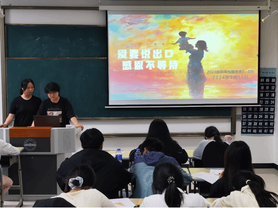 “同學們,猜一猜明天是什么節(jié)日啊?”“母親節(jié)!”5月11日,新聞傳播學類專業(yè)2023(7)、(8)班在K202教室開展以“愛要說出口,感恩不等待”為主題的團建活動。活動開始前,活動負責人、新聞傳播學類專業(yè)2023(7)、(8)班的班長楊雨霏、朱研溪提前為每位同學準備好信紙和信封。朱研溪說:“我們希望通過寫信這種傳統(tǒng)而深情的溝通方式,讓同學們勇敢表達自己的心聲,將對母親的愛訴說于筆尖?!睂W生們觀看一段關于母愛的感人短片后,...